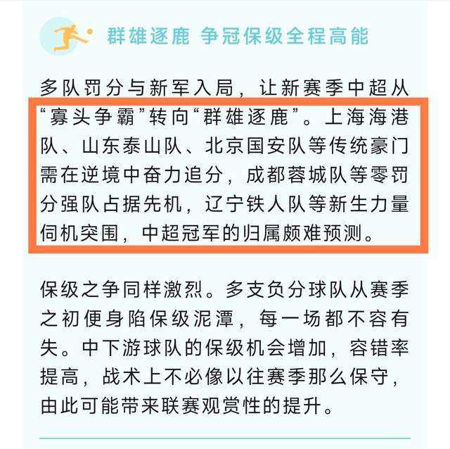 第二个,这篇文章还提到了一个细节,那就是介绍今年中超的争冠格局是群雄逐鹿,专门提到了5支球队名字,分别是海港、泰山、国安、成都蓉城和辽宁铁人,再次认可了辽宁铁人的争冠可能性。